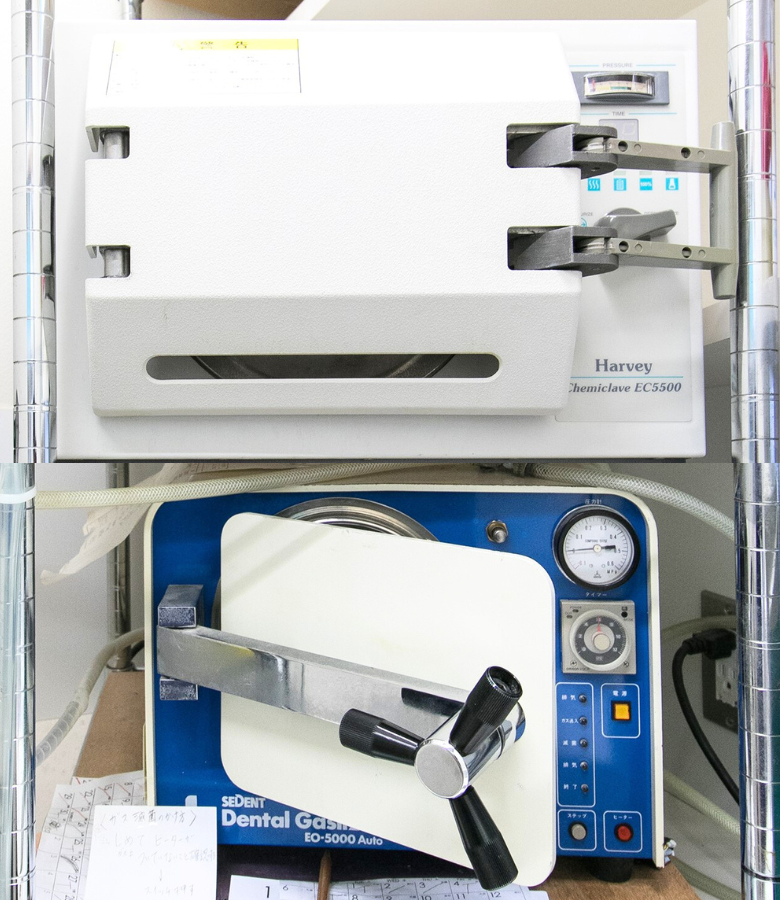 高温・高圧に耐えられる器具は高圧蒸気滅菌器で、熱に弱いプラスチック製品や精密機器はガス滅菌器で、素材に応じて最適な方法で処理し、あらゆる細菌やウイルスを死滅させます。